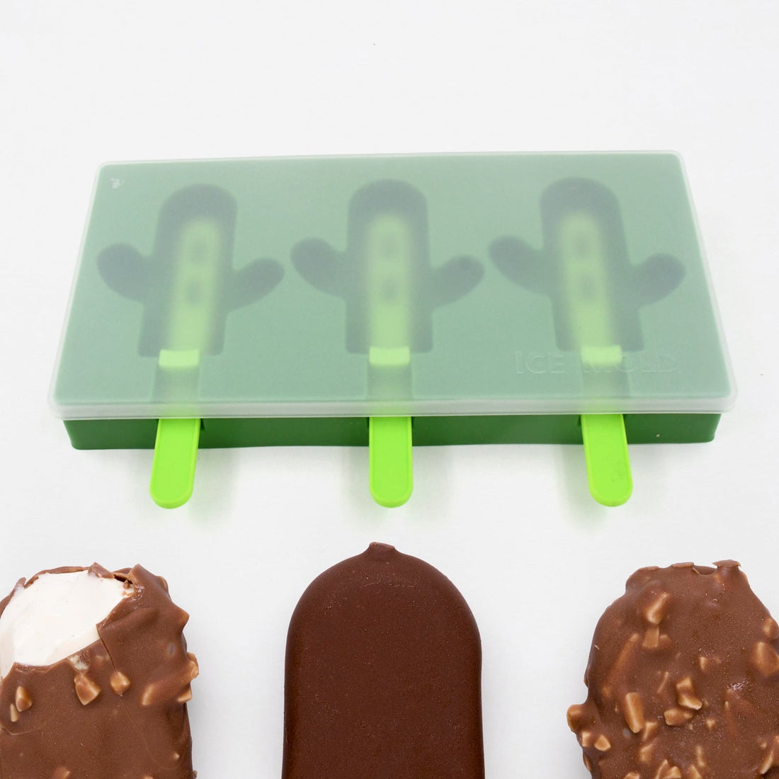 Ice Cream Mould sicle Mold, Cactus Shape Ice Molds Homemade sicle for DIY Ice sicle, 3-Cavity Summer Food Kitchen Tools (1 Pc)