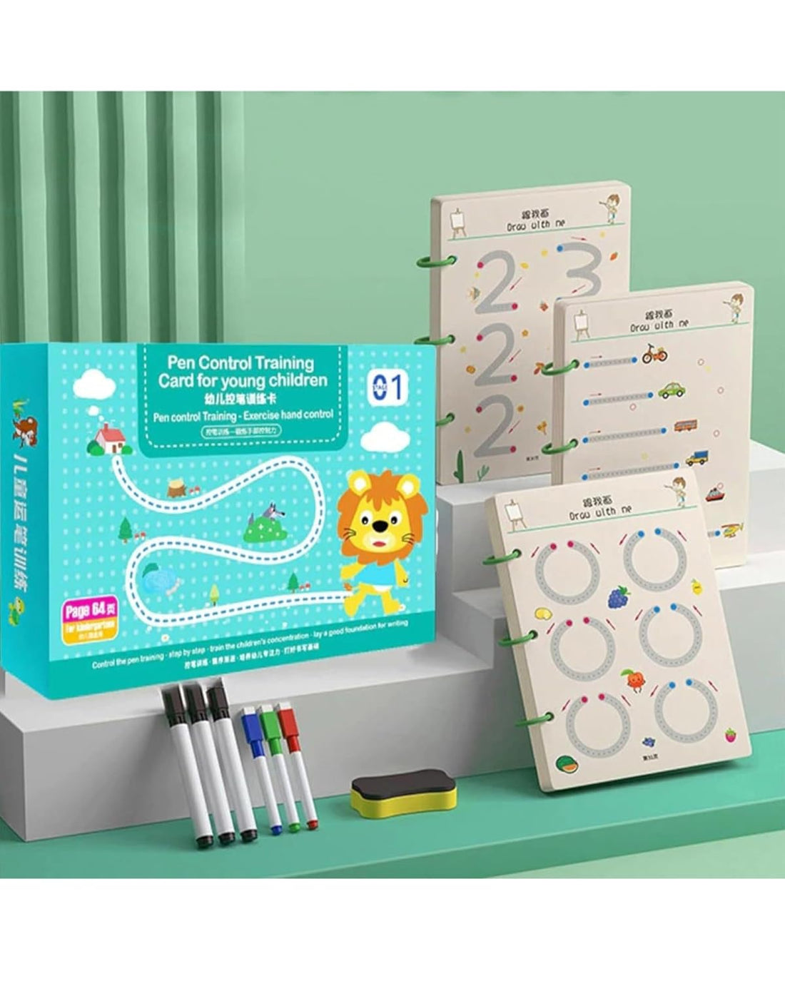 64-Page Magic Tracing Book Set – Reusable Practice Workbook for Kids | Alphabet & Number Writing | Pen Control & Preschool Learning