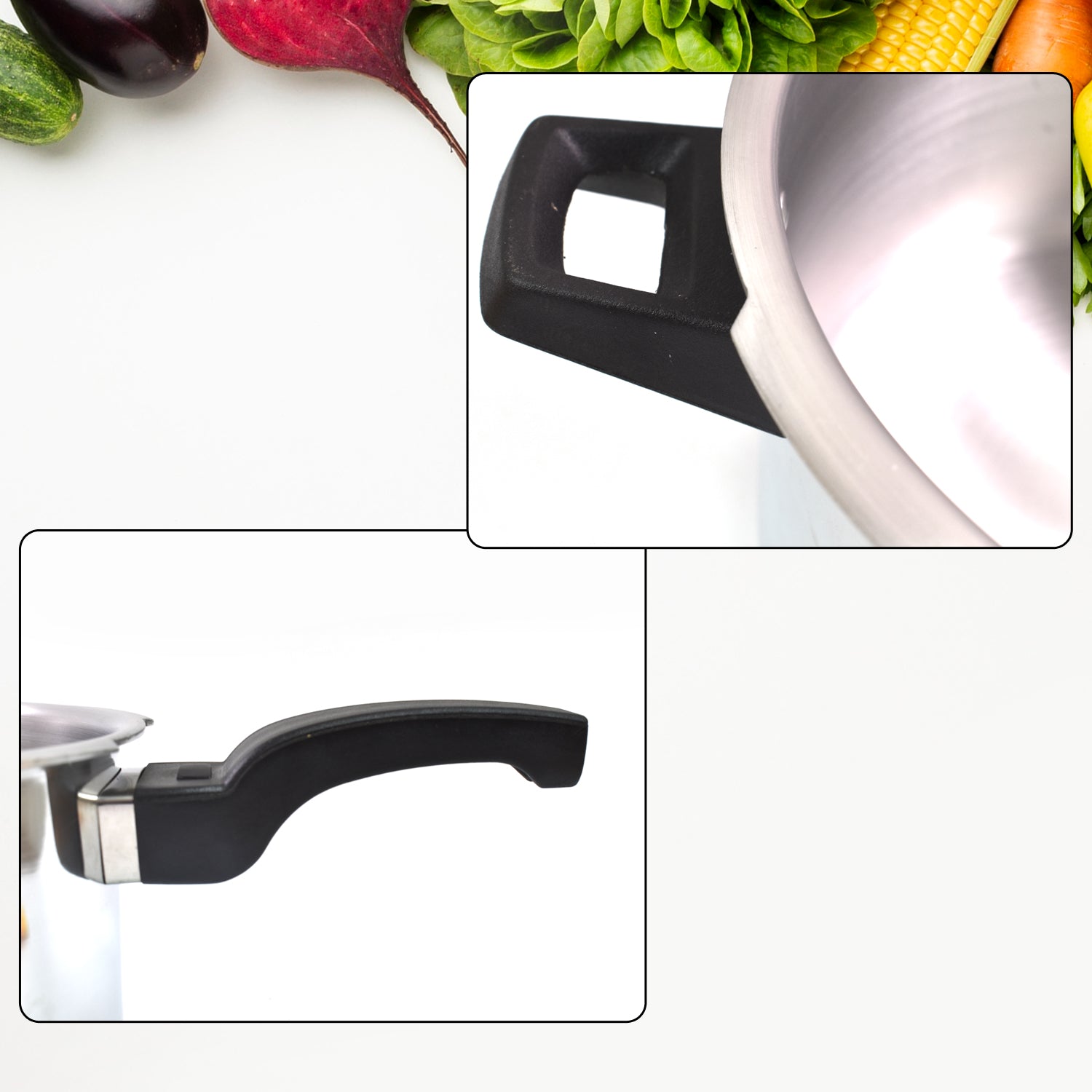 - Gasket : Heat-resistant, Thicker, Durable. Weight Set: Pressure control, Easy attach. Handle: Grip Handle, Weight distribution, Cool-touch, Strong attached.