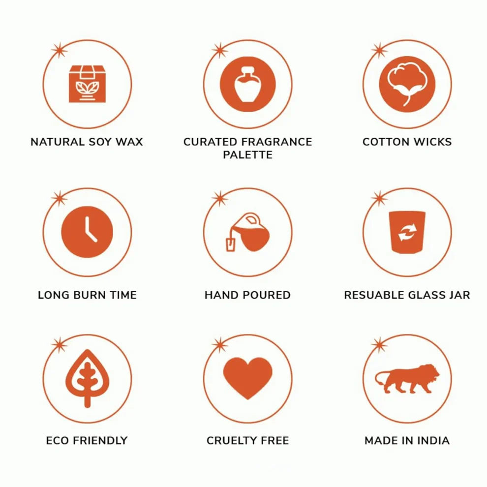 ⚠️ Care: Trim wick to ~5–7 mm before use; place on a heat-safe surface; avoid drafts; keep away from children & pets; don’t burn for over 3 hours continuously; never leave unattended