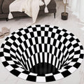 3D Space Round Carpet, Checkered Vortex Optical Illusions Non Slip Area Rug -Slip Floor Mat Non-Woven Doormat, for Living Dinning Room Bedroom Kitchen, 3D Vortex Rug Visual Illusion Rug Anti-Skid Area Dining Room Mat (1 Pc / 78 Cm)