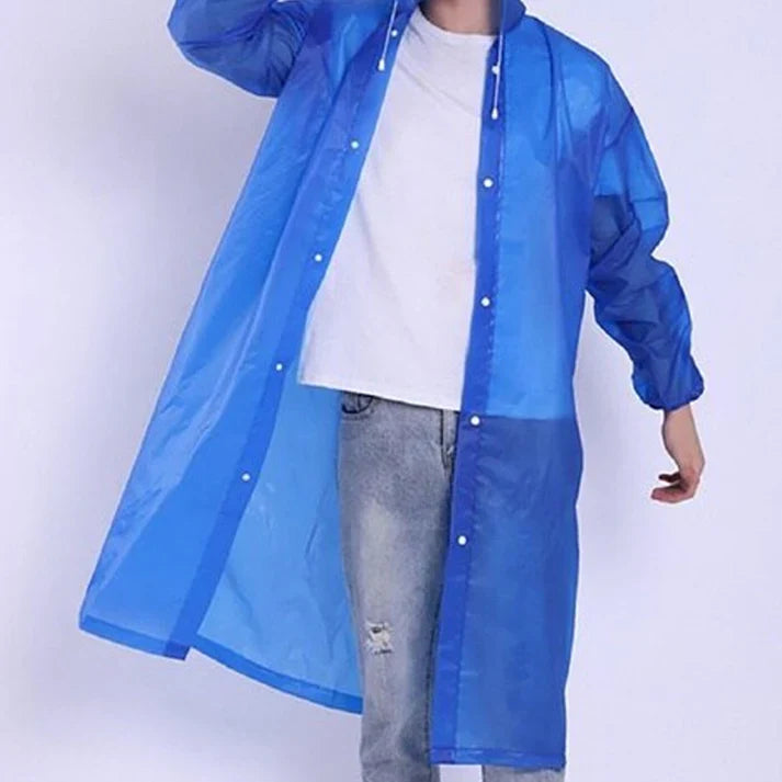 - Nice-quality EVA material allows it to be recycled for long periods of time. Unlike ordinary disposable raincoats, this clear raincoat for adult is not only quick-drying but also reusable.