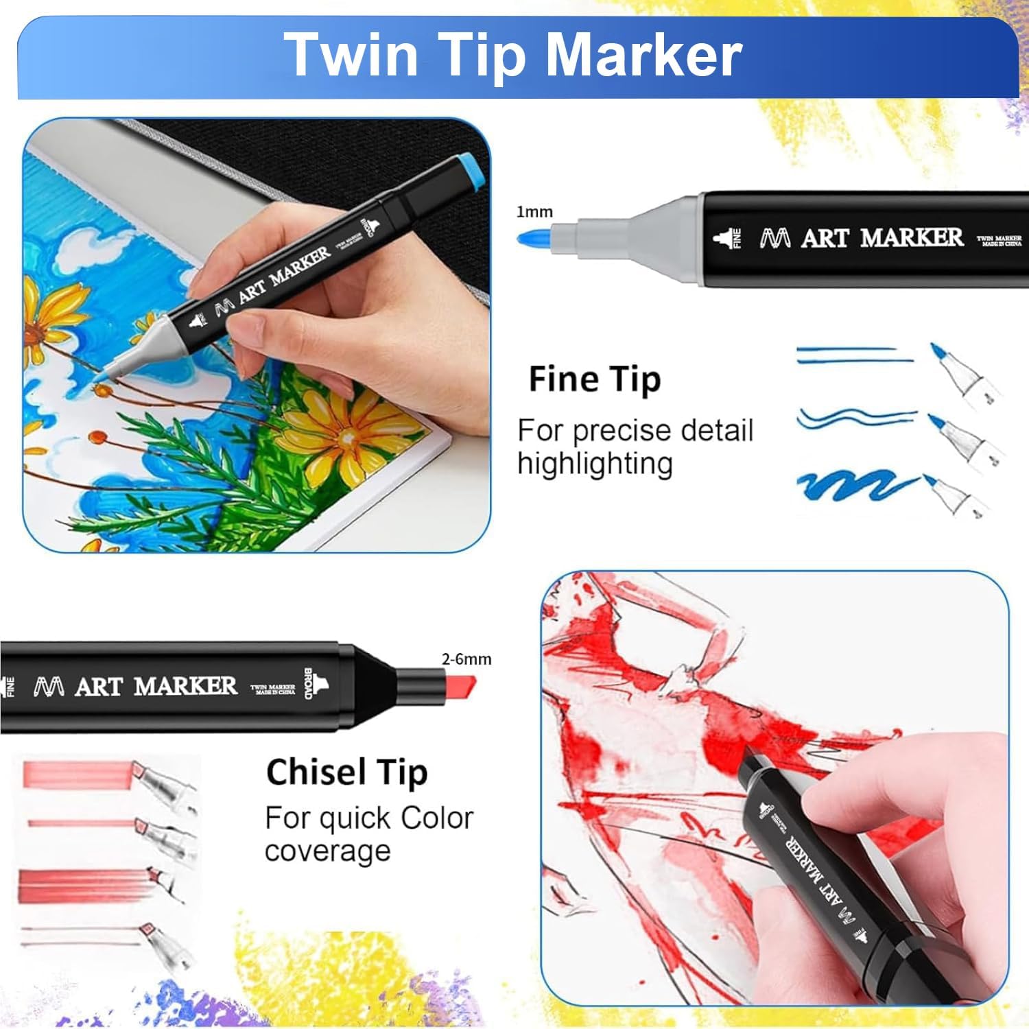Dual Tips: Features a fine 1mm tip for details and a chisel tip (1–6mm) for filling large areas. Great for sketching, colouring, shading, manga, calligraphy, and more.